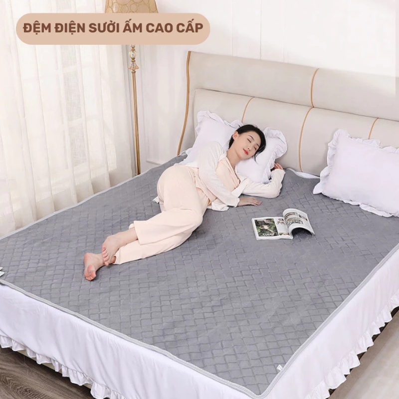 Mẫu này có chất liệu nhung sang trọng, mềm mịn khi tiếp xúc trực tiếp với da, mang lại cảm giác thư giãn, “ôm” ấm khi nằm. Cũng được trang bị 2 vùng nhiệt độc lập với bộ điều khiển riêng, giúp tối ưu hóa trải nghiệm khi sử dụng 1 mặt hoặc 2 mặt giường. Với thiết kế có điều khiển rõ ràng, bạn dễ dàng bật/tắt, chọn chế độ và an toàn hơn khi sử dụng trong phòng ngủ.
