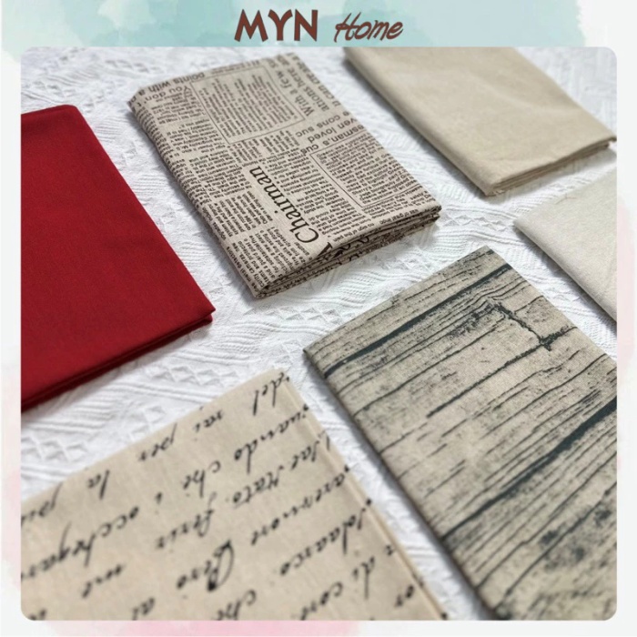 Nếu bạn đang tìm kiếm một thảm chụp ảnh mẫu phá cách, thì vải phông nền vân gỗ hoặc họa tiết báo chí là lựa chọn đáng thử. Chưa may viền nên dễ cắt hoặc tạo form theo ý muốn, có thể dùng làm khăn trải bàn, background chụp flatlay hoặc trang trí không gian làm việc. Phong cách này rất hợp với các shop bán đồ vintage, handmade hoặc decor cá tính.