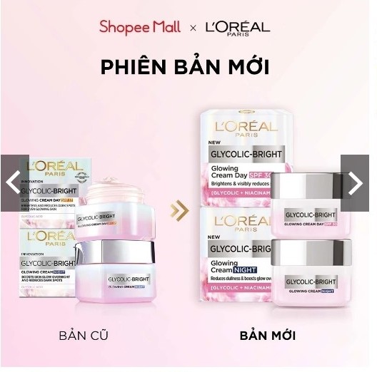 - 01 kem dưỡng sáng mờ thâm nám L'Oreal Paris Glycolic Bright 8% (AHA) SPF30 dung tích 15ml