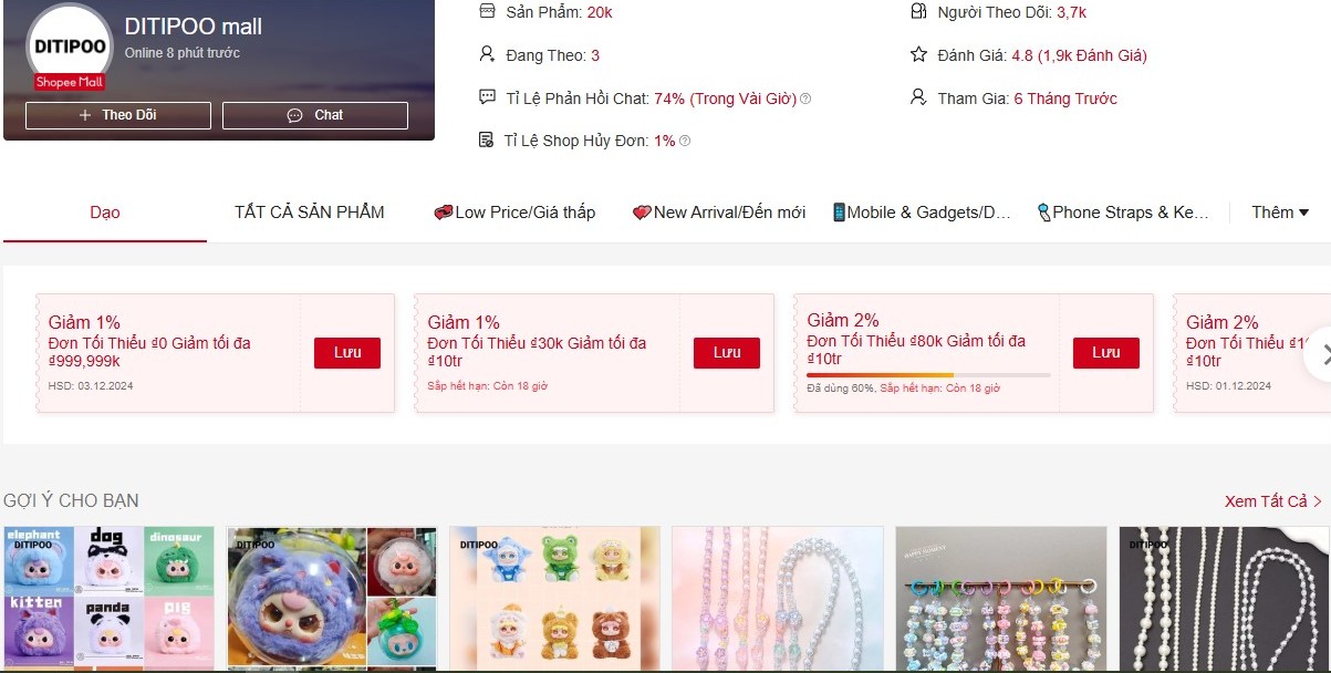 DITIPOO mall cũng là một Shop bán Baby Three 12 con giáp trên Shopee chất lượng cho mọi người. Hiện nay Shop có 3.7k Follow chỉ sau 6 tháng với số sản phẩm trong gian hàng là 20k, lượt đánh giá từ 4.8* là 1.9k.