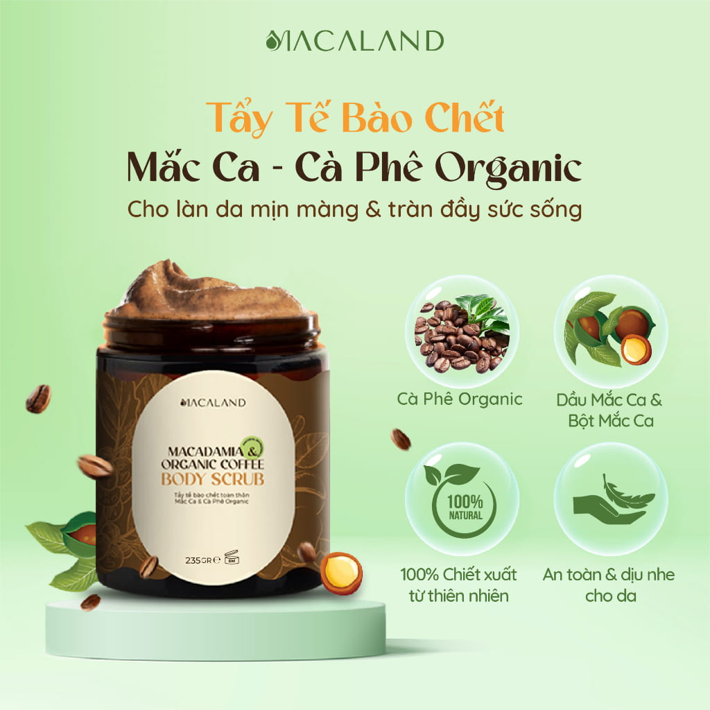 - Tẩy tế bào chết body Cà Phê Organic - Mắc Ca MACALAND 235g