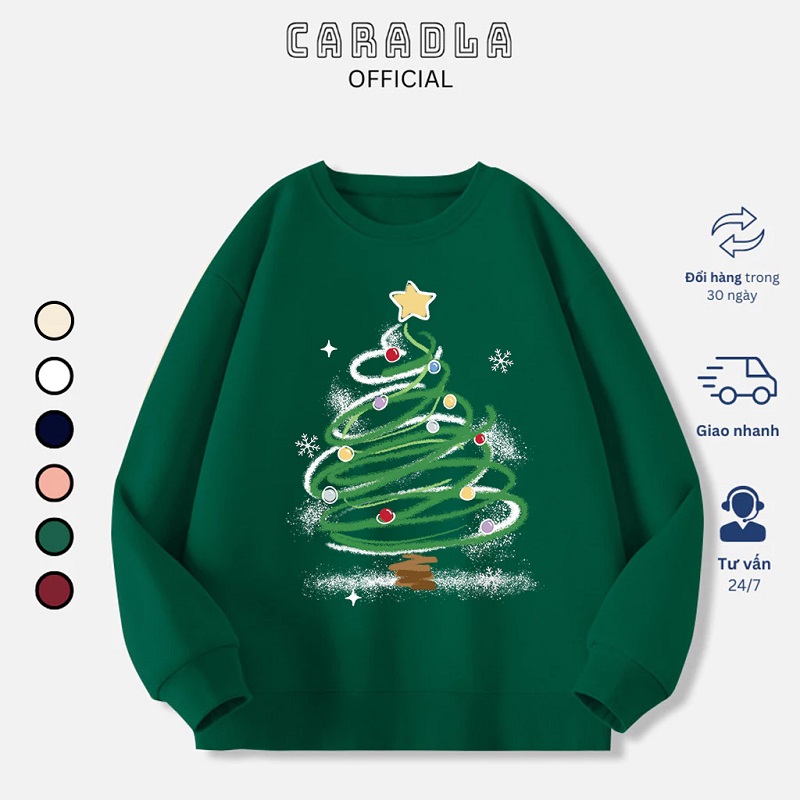 Nếu bạn đang tìm kiếm một chiếc áo sweater với chút không khí Giáng Sinh, chiếc áo CARADLA này chính là sự lựa chọn hoàn hảo. Với hình ảnh cây thông Giáng Sinh nổi bật trên nền áo, kết hợp cùng chất liệu nỉ lót bông, chiếc áo này không chỉ ấm áp mà còn đem lại cảm giác vui tươi, dễ thương. Form rộng và thiết kế unisex phù hợp cho cả nam và nữ, chắc chắn sẽ là điểm nhấn thú vị trong tủ đồ mùa đông của bạn.