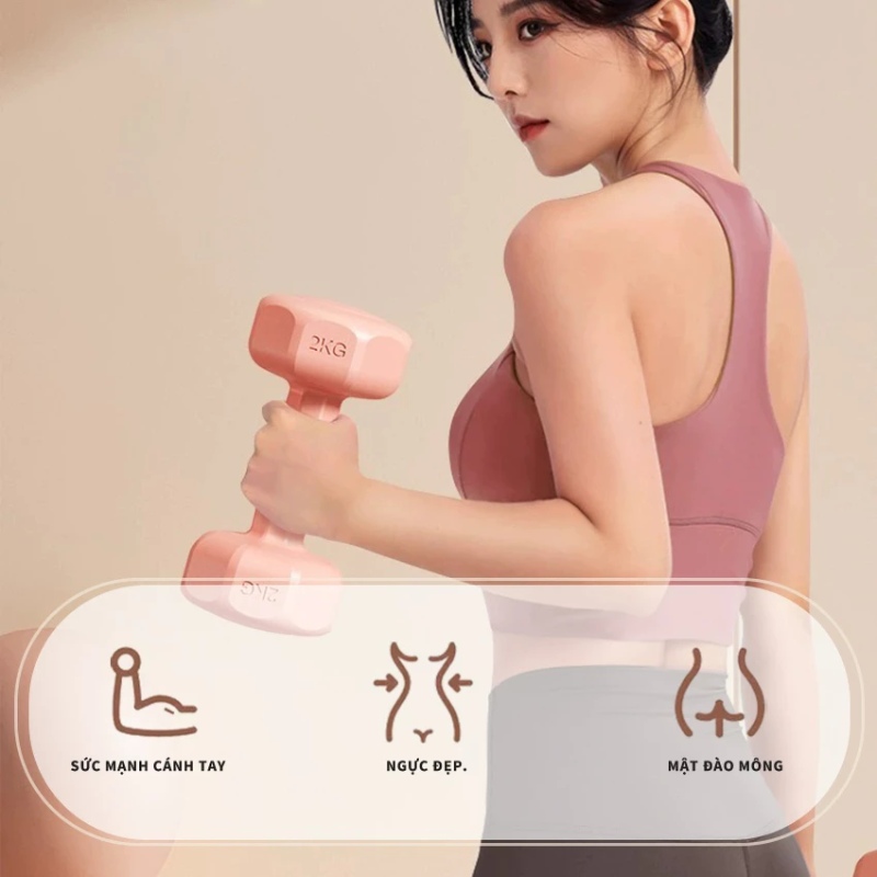 Tạ tay là dụng cụ thể dục tại nhà đơn giản nhưng mang lại hiệu quả cao khi tập luyện nhóm cơ tay, vai và lưng. Với thiết kế nhỏ gọn, nhiều mức trọng lượng phù hợp cho nữ giới, phần bọc nhựa bên ngoài giúp cầm nắm êm ái và tránh trơn trượt trong quá trình tập.