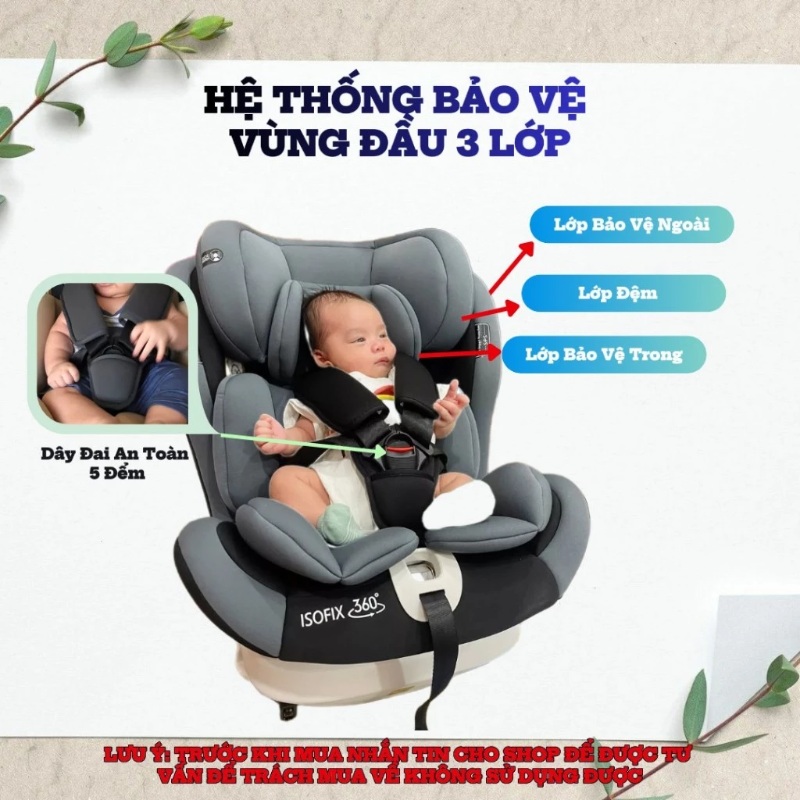 - Ghế ngồi ô tô cho bé ISOFIX & ROY xoay 360 an toàn