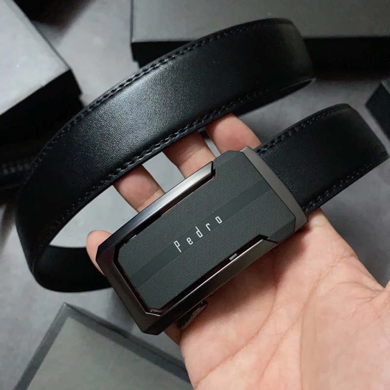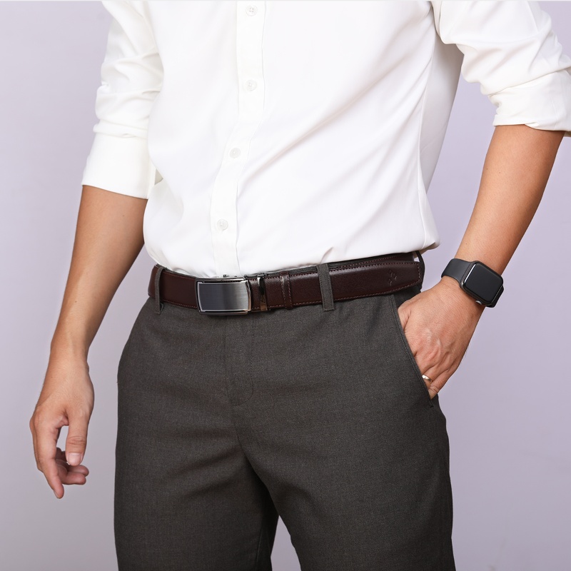 Thắt lưng nam da bò nguyên tấm L110 màu đen khoá tự động nhiều mặt lựa chọn Bụi leather