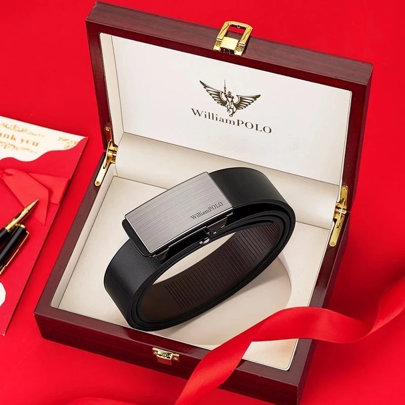 - Thắt lưng nam da bò cao cấp Williampolo mặt đen bạc khóa tự động, họa tiết nổi sang trọng