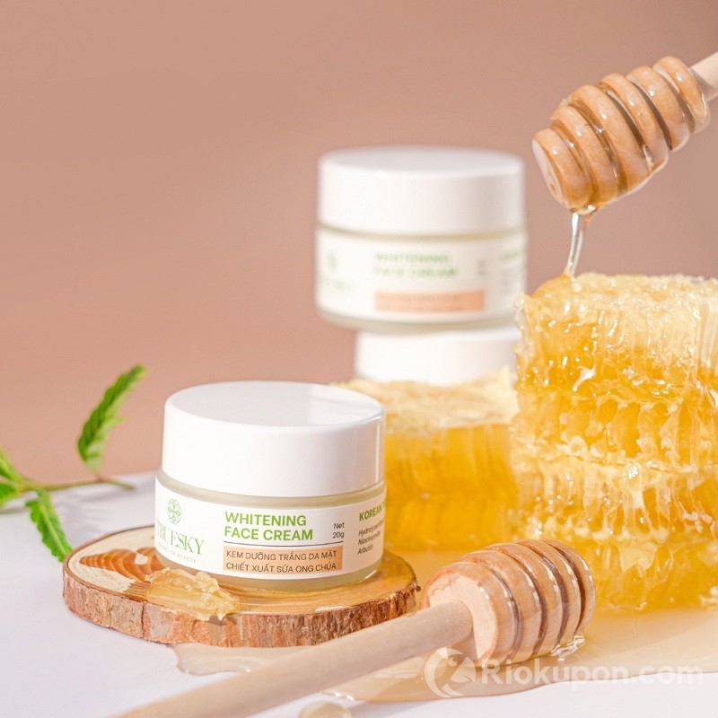 Kem dưỡng trắng da mặt Truesky Whitening Face Cream có chiết xuất từ sữa ong chúa chứa nhiều Vitamin cho da như B1, B2, B3, B5,... và nhiều khoáng chất khác. Kem dưỡng giúp da căng mịn, trắng hồng khỏe mạnh, chống lại các dấu hiệu lão hóa da, đem lại sự tươi trẻ cho làn da. Sản phẩm phù hợp với mọi loại da nhưng da mụn thì nên cân nhắc khi sử dụng.