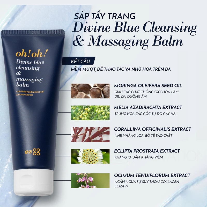 - Sáp tẩy trang làm sạch sâu oh!oh! Divine Blue Cleansing & Massaging Balm
