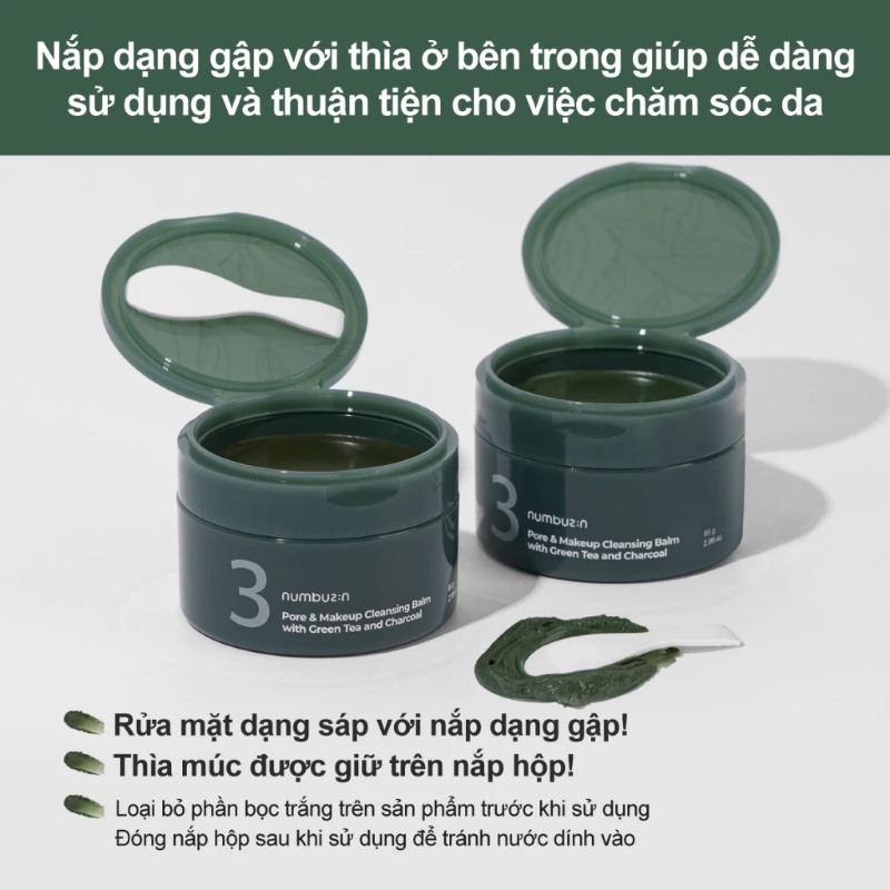 - Sáp tẩy trang numbuzin No.3 Pore & Makeup Cleansing Balm với trà xanh và than