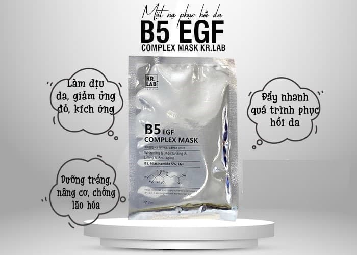 Mặt nạ dưỡng trắng da Kr.Lab giúp dưỡng ẩm, dưỡng trắng chuyên sâu, dành cho những làn da mất nước và xỉn màu. Với bảng thành phần gồm EGF là hoạt chất kích thích sự phục hồi, tái tạo làn da, giúp da trở nên ẩm mượt và căng mịn. Ngoài ra em này còn chứa thêm phức hợp 7 thành phần peptide, Hyaluronic Acid, Vitamin C làm trẻ hóa, dưỡng trắng, thúc đẩy quá trình sản sinh tế bào mới cực đỉnh.