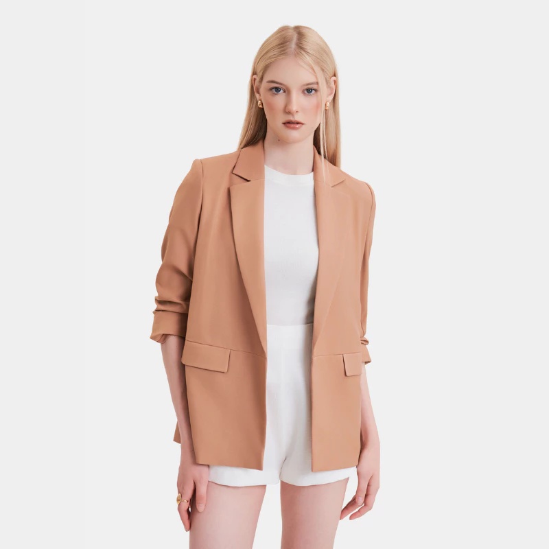 Thiết kế tay dài phối nhún và chi tiết xắn tay mang đến vẻ ngoài nữ tính, thanh lịch. Dáng blazer nhẹ nhàng, chiết eo vừa phải giúp tôn dáng và dễ phối cùng váy liền hoặc quần ống suông. Chất vải vest đứng form, dày dặn nhưng vẫn giữ được độ mềm mại khi mặc. Đây là lựa chọn hoàn hảo cho nàng công sở yêu thích phong cách tinh tế.
