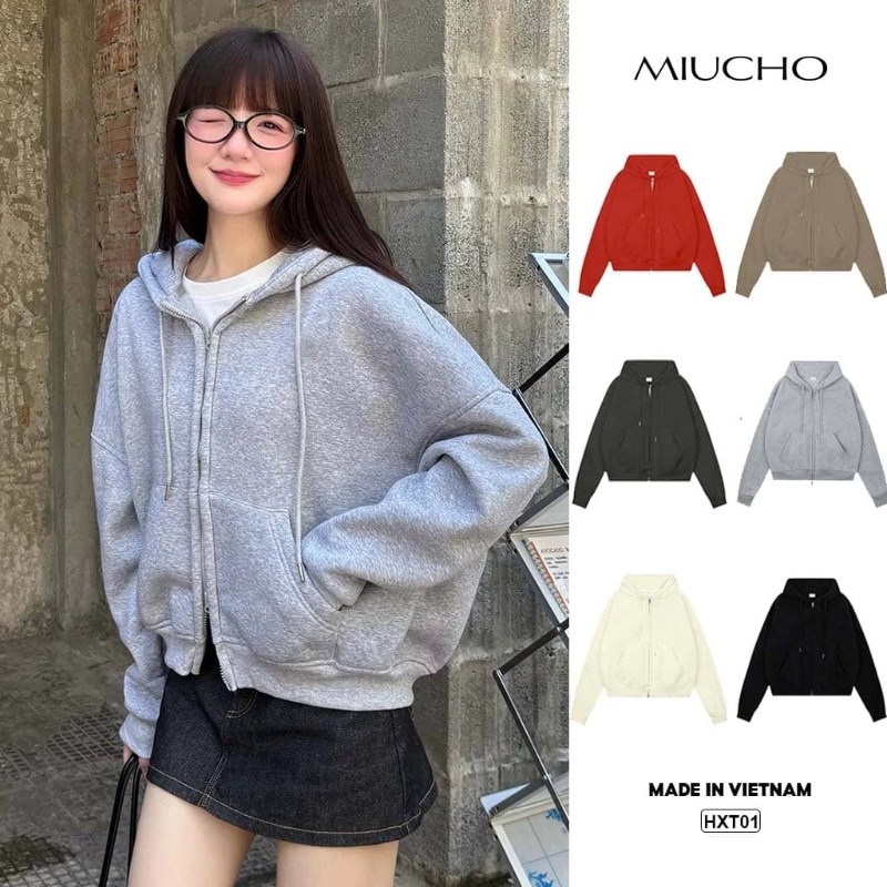 - Áo khoác hoodie zip Boxy MIUCHO nỉ 2 da cao cấp
