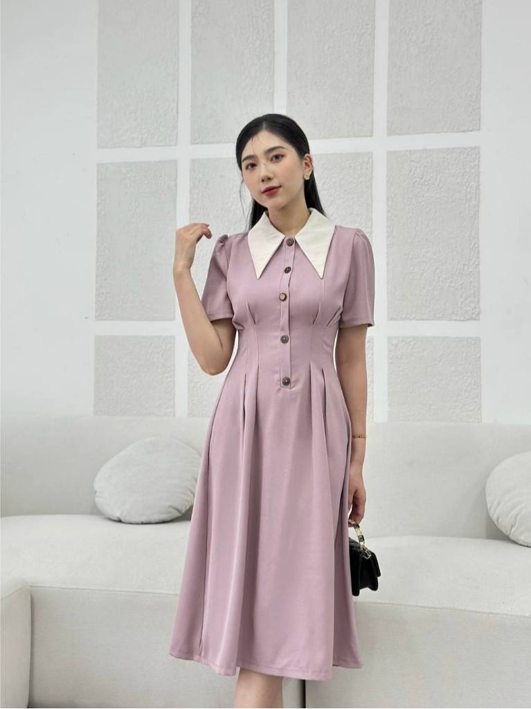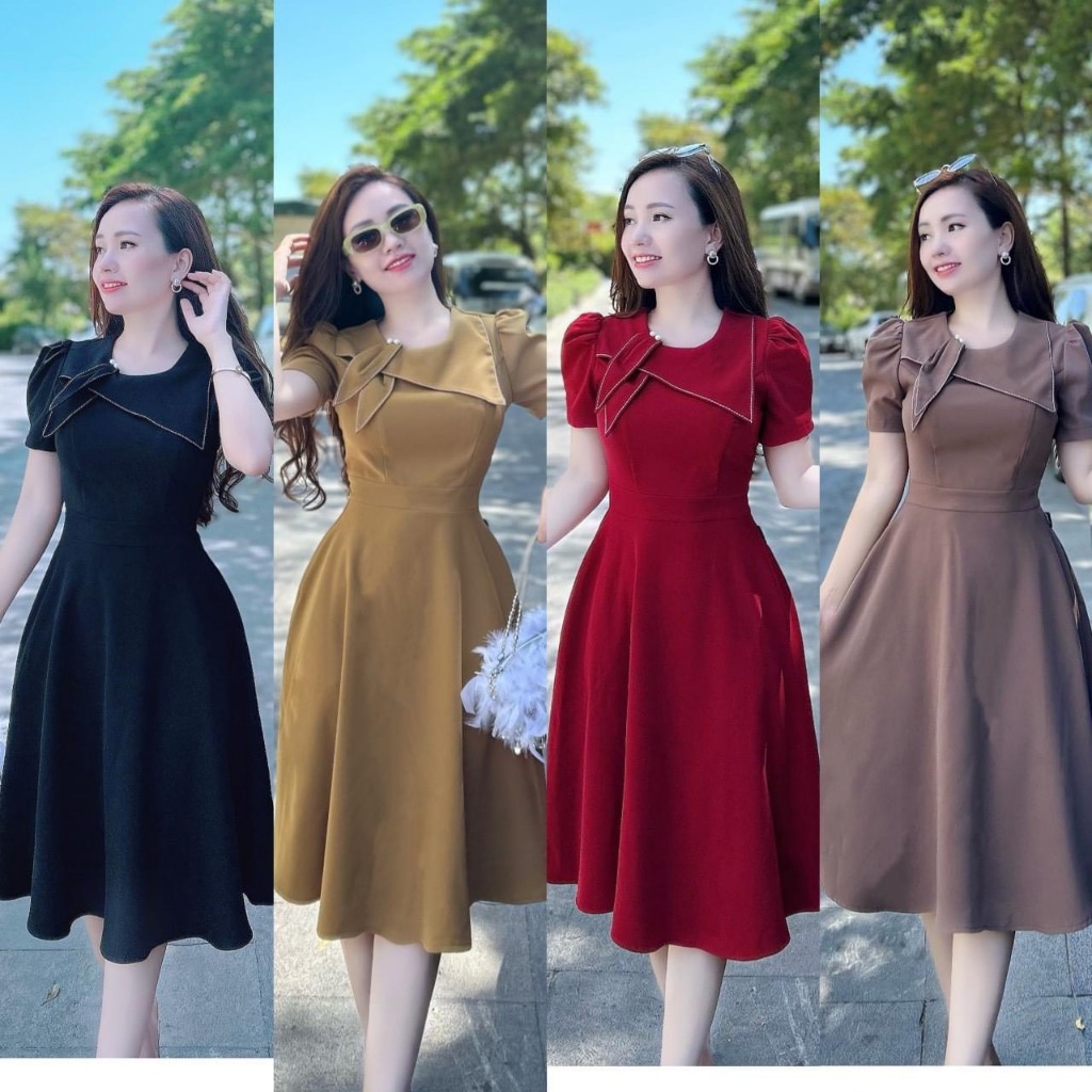 - Váy cổ đức cộc tay, dáng xòe lưng chun Hamy Clothing