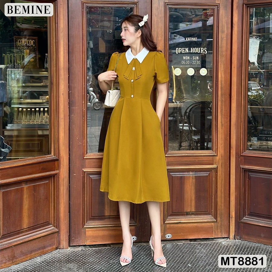 Nàng đang tìm mẫu đầm công sở đẹp, sang trọng, năng động thì hãy chọn ngay chiếc đầm BEMINE - MT8881 này. Đầm được may bằng chất vải Cotton lạnh co dãn, thiết kế 2 lớp, chiết eo, có túi hông và khóa sau. Phần chân váy xếp ly xòe nhẹ tạo sự bồng bềnh, tôn dáng người mặc.