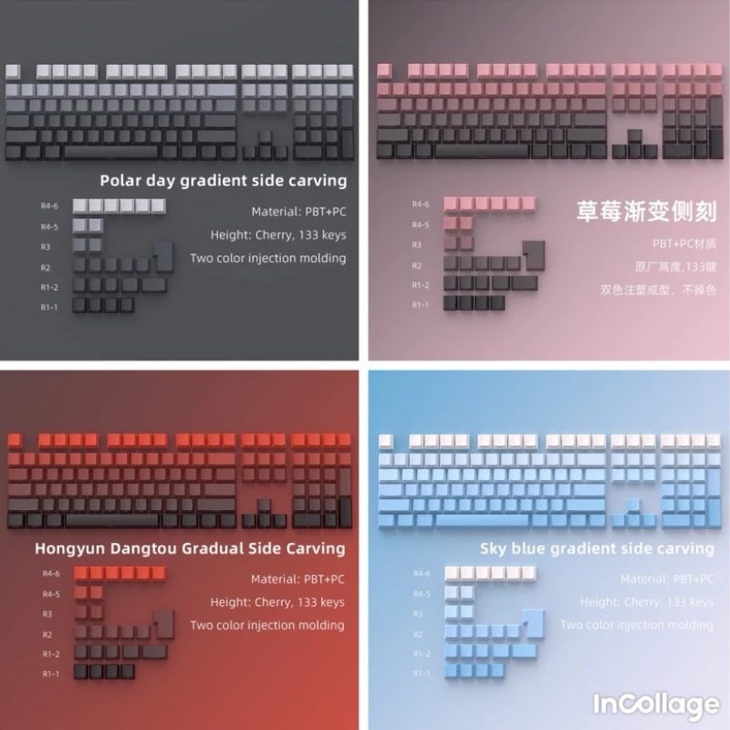 Đúng như tên gọi, mẫu keycap này sở hữu thiết kế gradient chuyển màu độc đáo cùng kiểu in side print (chữ in bên hông) cực kỳ ấn tượng khi kết hợp với đèn LED RGB. Chất liệu nhựa xuyên sáng giúp ánh sáng lan tỏa đều, tạo hiệu ứng lung linh vào ban đêm. Đây là một trong những keycap dưới 200k được giới game thủ săn đón nhiều nhất vì vừa rẻ vừa đẹp mắt.