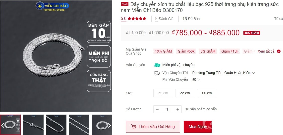 Dây chuyền được làm từ chất liệu Bạc 925 cao cấp, với chiều dài dây 50, 55, 60cm. Kiểu dây xích trụ rất chắc chắn, người đeo thoải mái vận động mà không lo bị đứt, gãy.