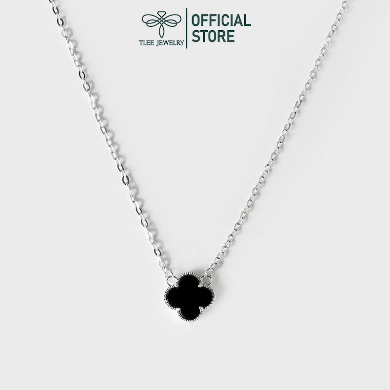 - Dây chuyền bạc mặt cỏ 4 lá màu đen