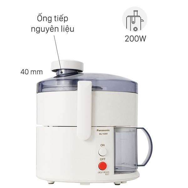 - Ống tiếp nguyên liệu lớn: cho phép ép nhiều loại hoa quả khác nhau mà không cần cắt nhỏ