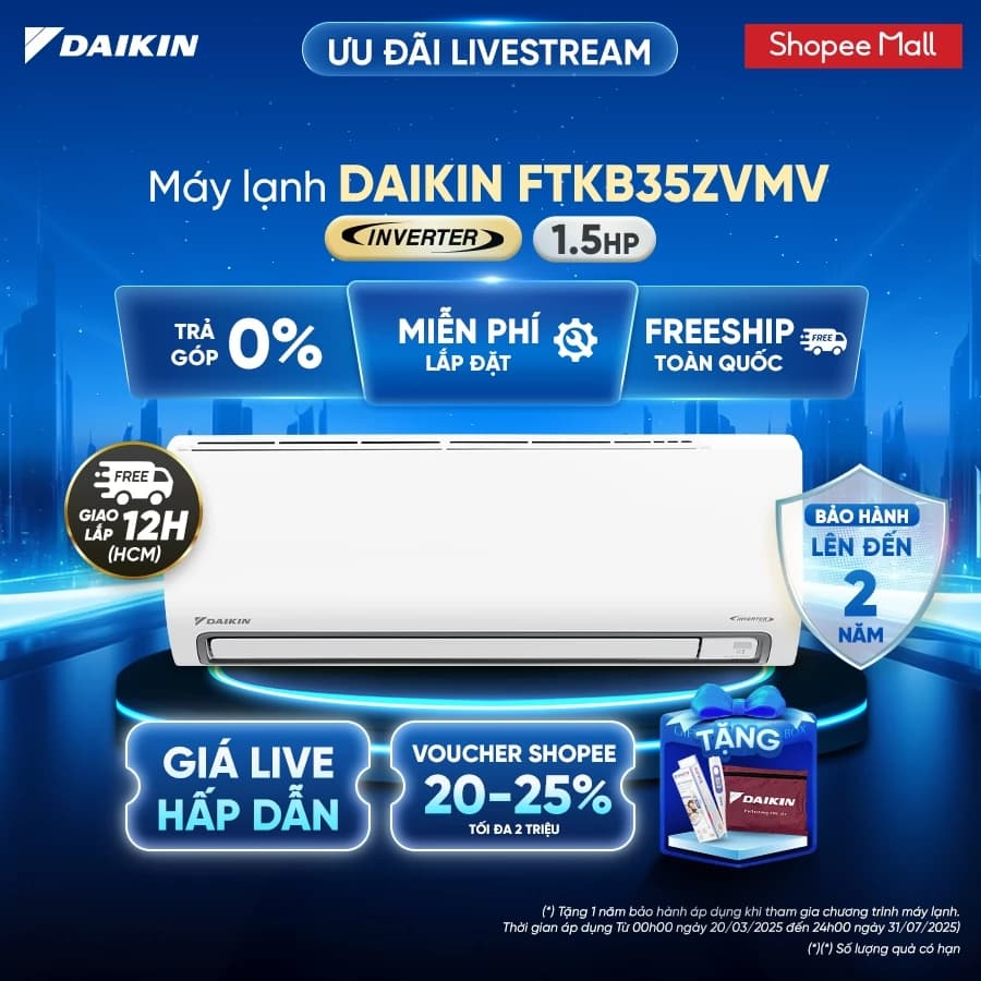 - Máy lạnh Daikin Inverter 1 chiều FTKB35ZVMV 1.5HP 12000BTU
