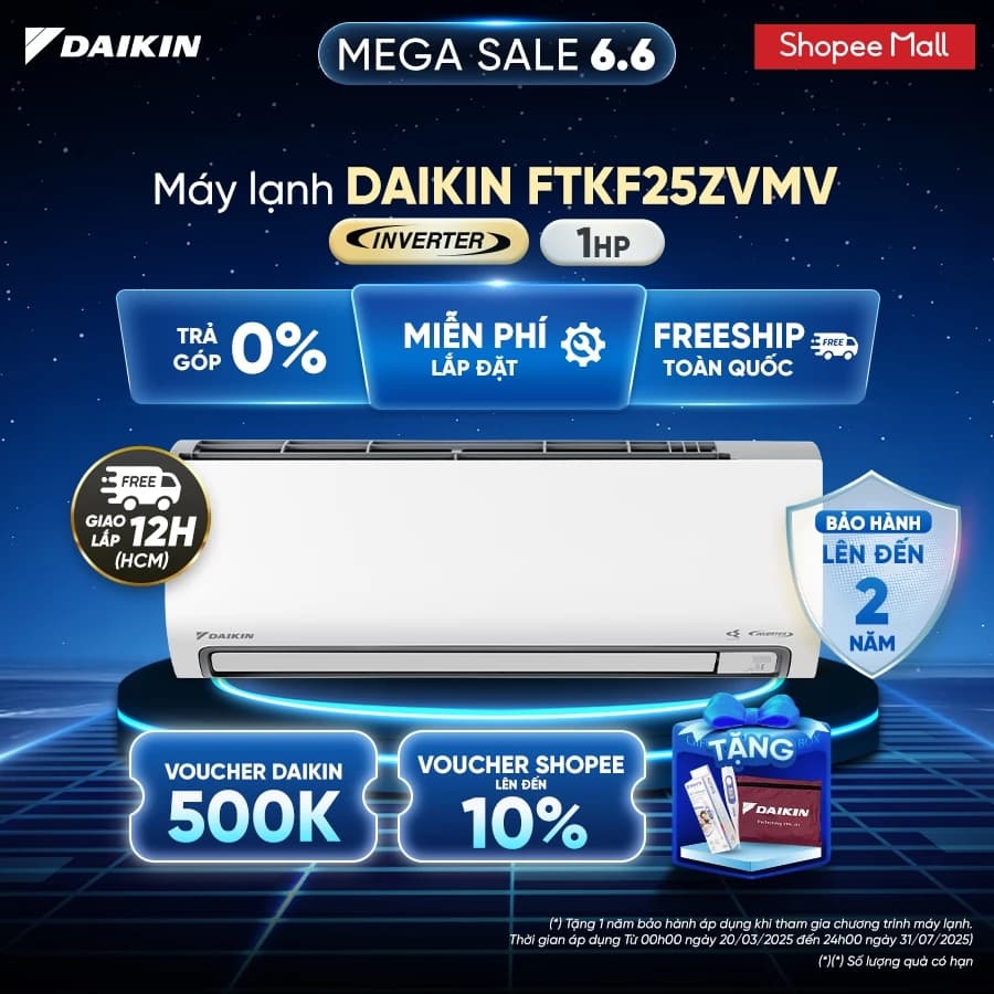 - Máy lạnh Daikin 1 chiều Inverter FTKF25ZVMV 1HP 9000 BTU