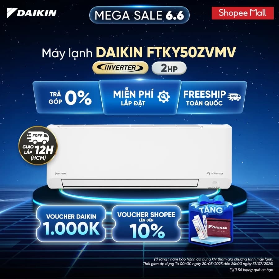 - Máy lạnh Daikin Inverter 1 chiều FTKY50ZVMV 2HP 18.000BTU