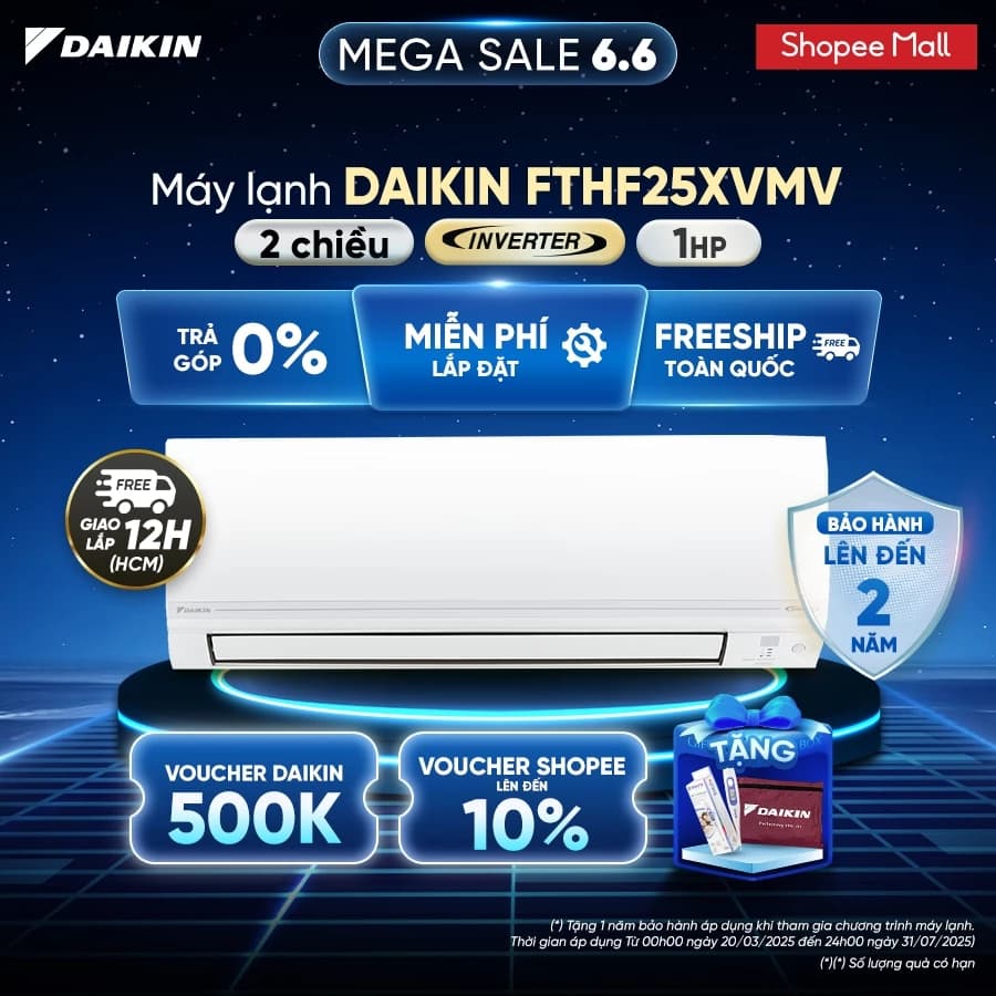 - Máy lạnh Daikin Inverter 2 chiều FTHF25XVMV - 1HP 9000BTU