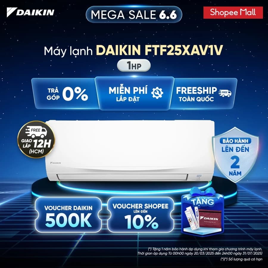- Máy lạnh Daikin 1 chiều FTF25XAV1V 1HP (9000 BTU)