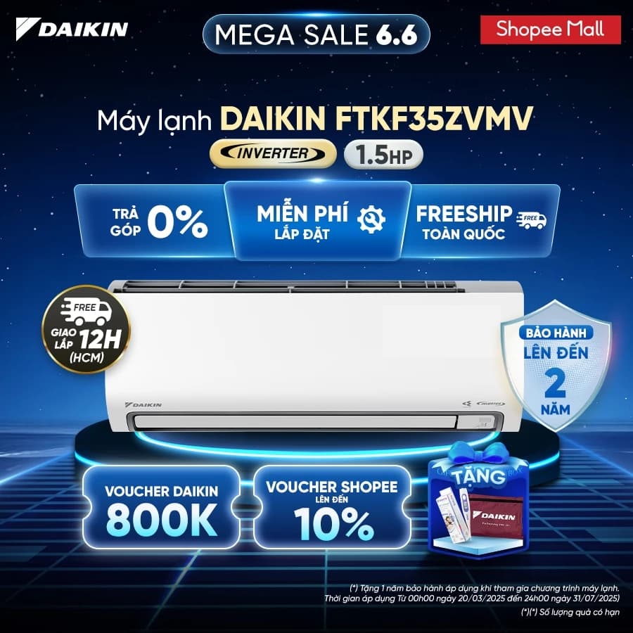 - Máy lạnh Daikin Inverter 1 chiều FTKF35ZVMV 1.5HP 12.000BTU