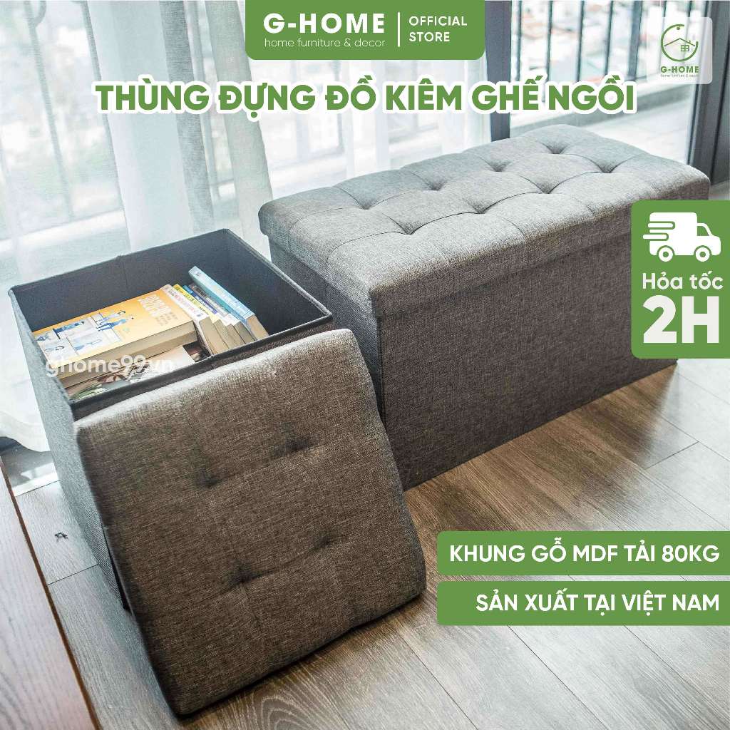 Ghế đựng đồ đa năng Ghome hộp đựng quần áo ghế đôn gỗ bọc vải chắc chắn tiện lợi