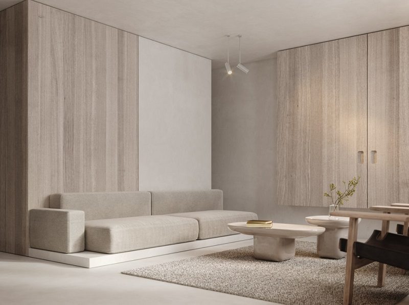 Một vài tone màu bạn có thể tham khảo cho phòng khách nhỏ là be nâu, trắng xám, đen trắng, ..