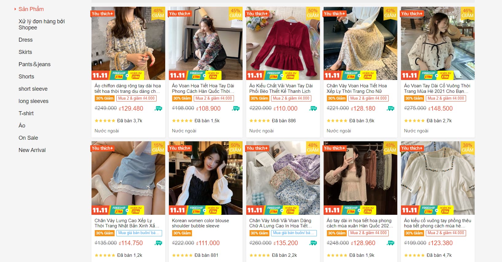 Tất cả sản phẩm từ áo kiểu, áo croptop,...đến quần jean đều có hàng nghìn lượt mua trên Shopee, điều này cho thấy đây là địa chỉ mua hàng chất lượng và được nhiều người tin mua. Gía chỉ từ 11k thôi nhé!