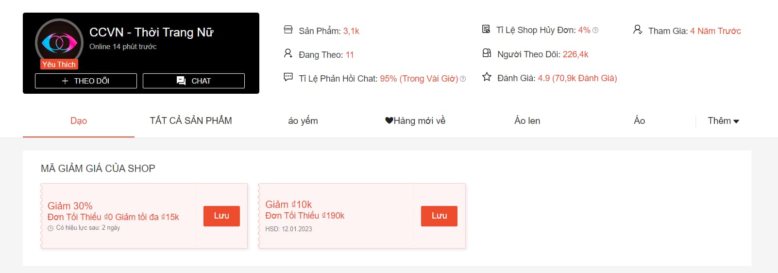 Link shop: CCVN - Thời Trang Nữ, Cửa hàng trực tuyến | Shopee Việt Nam