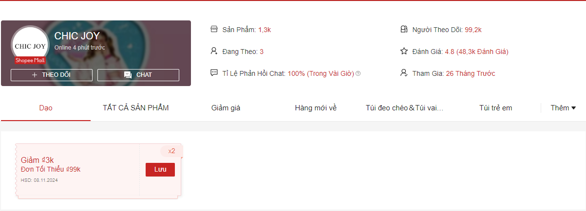 Link shop: Thương hiệu túi xách nữ CHIC YOY, Cửa hàng trực tuyến | Shopee Việt Nam