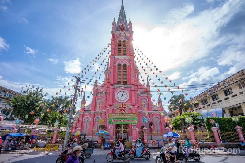 Nhà thờ Tân Định thuộc top những công trình lâu đời nhất tại TP Hồ Chí Minh được thực dân Pháp xây vào khoảng những năm 70 của thế kỷ XIX và được xây theo kiến trúc châu Âu. Đây được xem là địa điểm chụp ảnh lý tưởng vào dịp Tết, vừa mang nét đẹp cổ điển, vừa phảng phất hơi thở của hiện đại, là địa điểm thượng ngoạn của nhiều du khách khi đến Sài Gòn.
