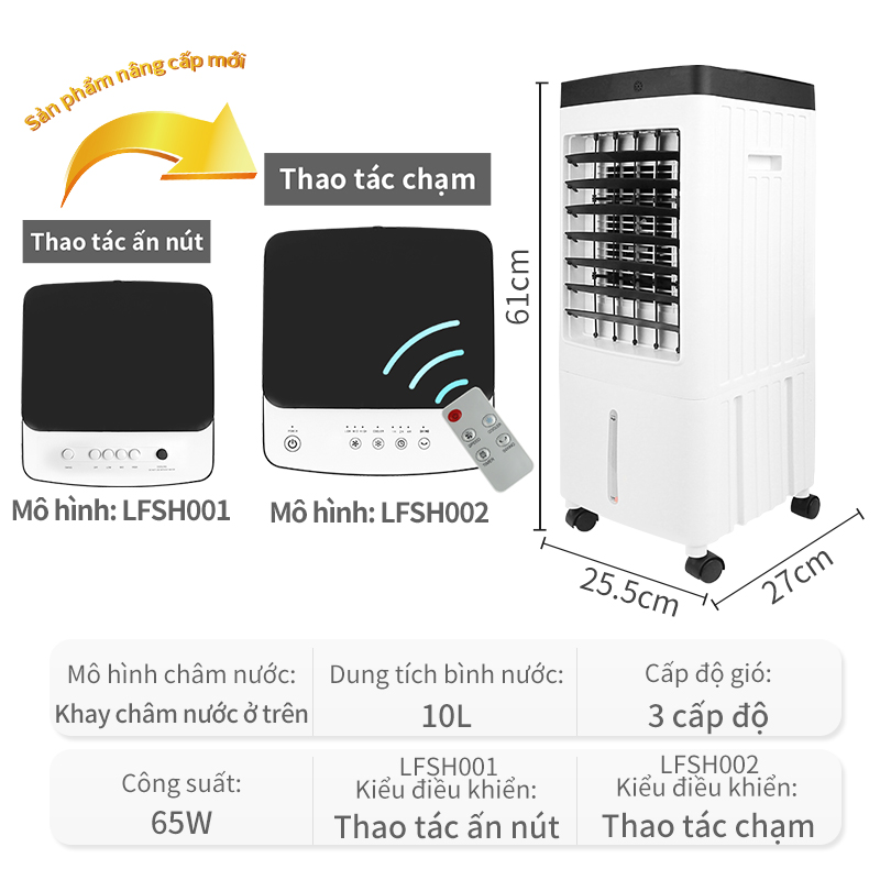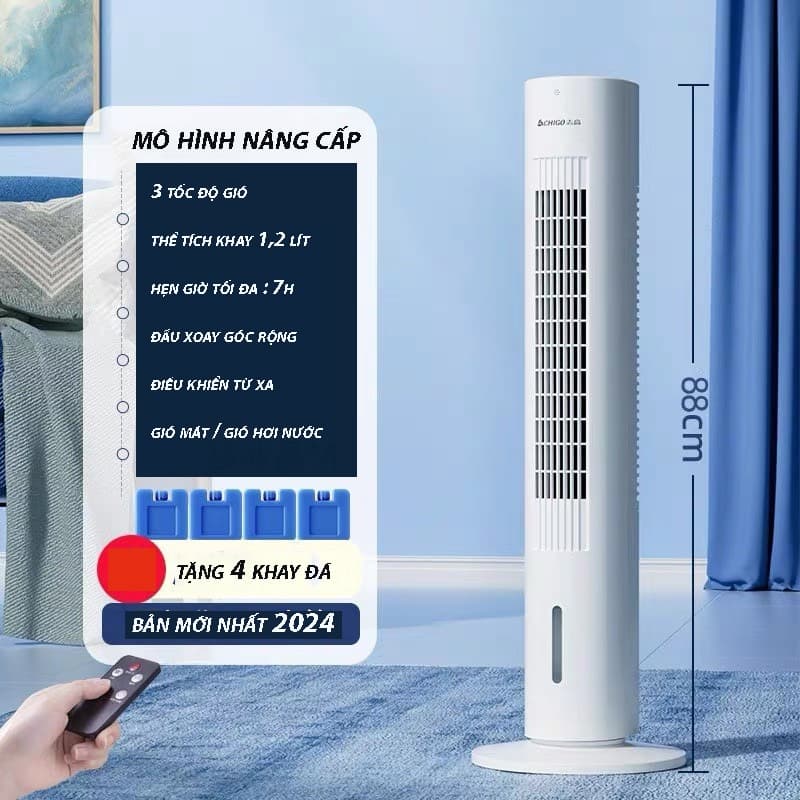 Bình chứa nước lớn tới 10L giúp sử dụng lâu hơn, ít phải thay nước. Gió luân chuyển góc rộng 120°, tạo vùng làm mát rộng. Màng lọc dày lọc bụi và tóc hiệu quả làm cho không khí sạch và mát mẻ hơn. Khay đựng nước phía trên vô cùng tiện lợi, 3 chế độ gió. Thiết kế có thể tháo rời, bánh xe vạn năng bạn có thể dễ dàng di chuyển đến nơi mình muốn.