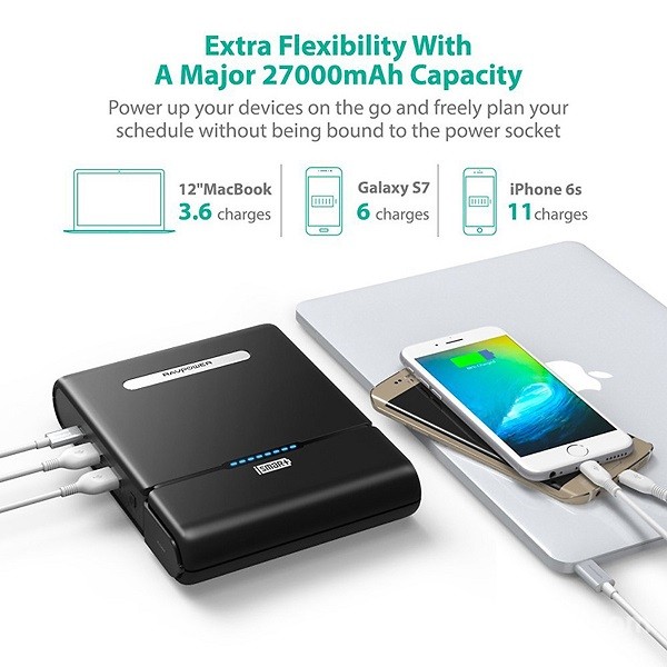 Pin sạc dự phòng của RAVpower đạt chứng nhận an toàn TSA, có thể sử dụng một cách an toàn. Sạc đầy pin nhanh chóng, trong vòng từ 6-8 giờ với nguồn sạc riêng 19V/1.6 A. Đầu ra USB Type-C cho phép sạc với tất cả thiết bị ngoại vi có hỗ trợ chuẩn Type-C, có thể sạc nhanh trên Macbook Pro.