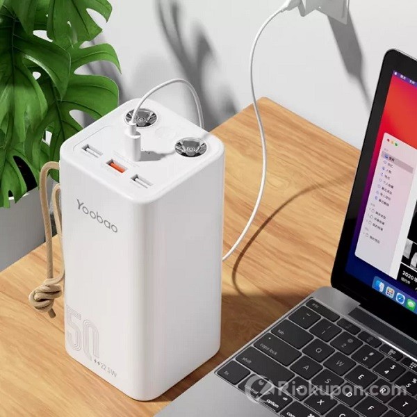 Ưu điểm của sạc dự phòng Yoobao H5 là có dung lượng siêu khủng 50.000mAh 185Wh. Sản phẩm có đèn nên cực kỳ tiện lợi. Sạc dự phòng này có thể sạc nhanh nhiều thiết bị cùng 1 lúc, sạc đầu vào qua cổng Type C có công suất cao.