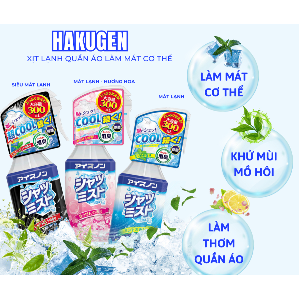 Xịt Lạnh Quần Áo Làm Mát Cơ Thể Hakugen Nhật Bản Nhiều Mùi Hương