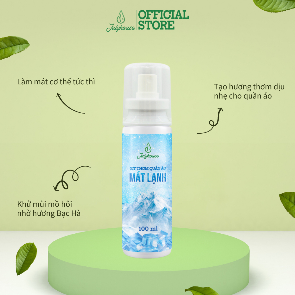 Xịt thơm quần áo mát lạnh cơ thể Julyhouse 100ml giúp hạ nhiệt ngày nóng mùi hương tinh dầu bạc hà