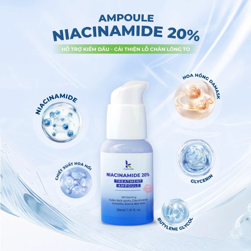 Serum B3 Niacinamide 20% K Lady Care 30ml kiềm dầu, thu nhỏ lỗ chân lông, hỗ trợ mờ nám tàn nhang, đốm nâu
