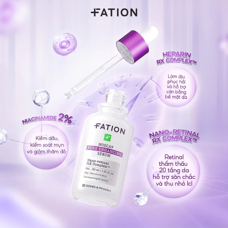 Serum Fation tím hỗ trợ kiềm dầu và se khít lỗ chân lông - Fation Nosca9 Pore Enhancing Serum 30ml