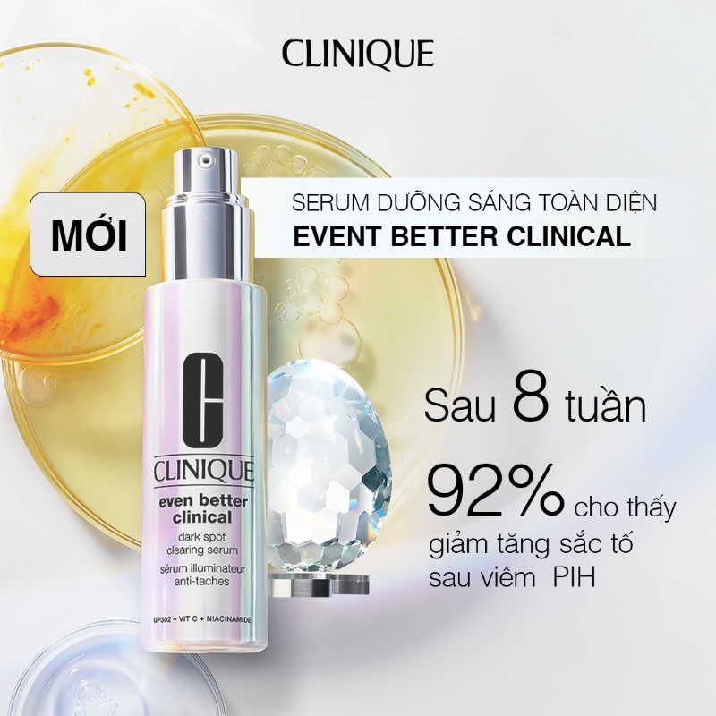Even Better Clinical™ Dark Spot Clearing Serum là dòng tinh chất đình đám đến từ Clinique, giúp làm mờ thâm nám hiệu quả nhờ công nghệ CL302 tiên tiến. Sản phẩm chứa hoạt chất dưỡng sáng da mạnh mẽ, giúp cải thiện sắc tố, làm đều màu da chỉ sau vài tuần sử dụng. Với kết cấu nhẹ, thẩm thấu nhanh, serum này phù hợp với mọi loại da, kể cả làn da nhạy cảm. Nếu bạn đang tìm kiếm giải pháp cho làn da rạng rỡ không tì vết, đây chính là lựa chọn hoàn hảo.