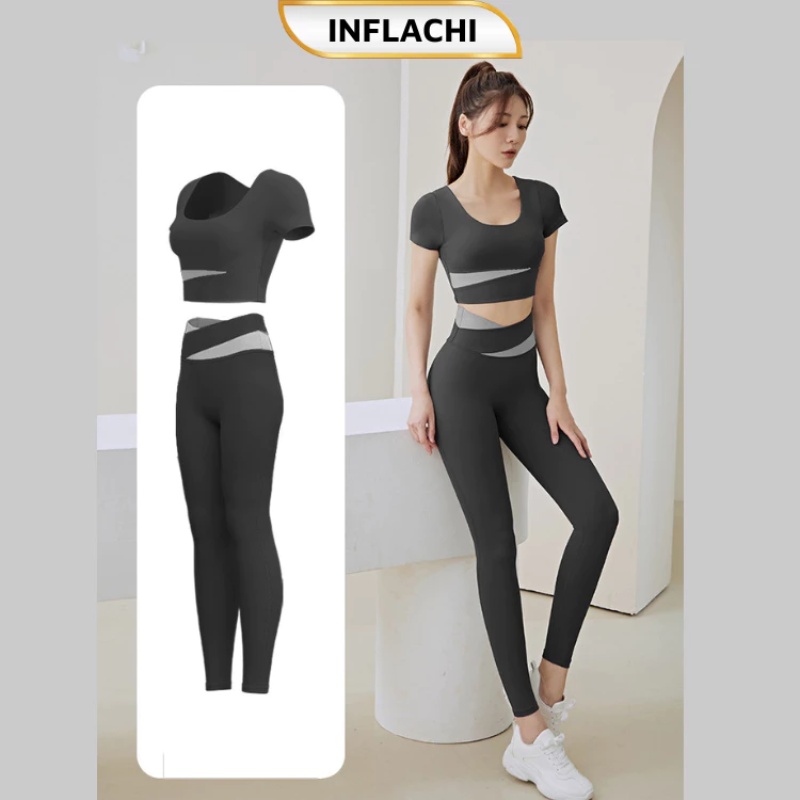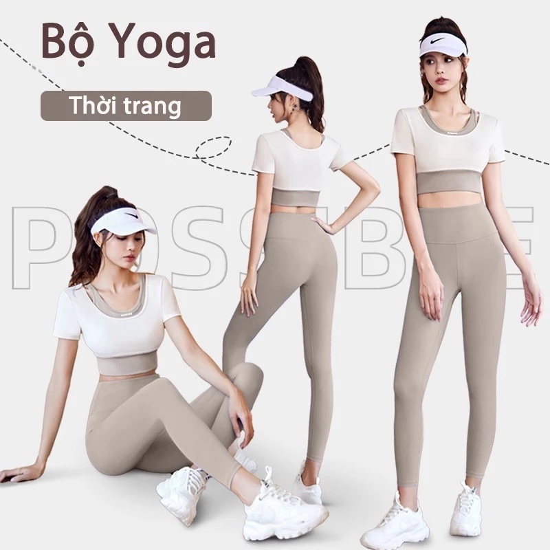 Bộ đồ tập yoga giả hai mảnh tay ngắn phong cách mới nhanh khô pilate chuyên nghiệp nữ MD045