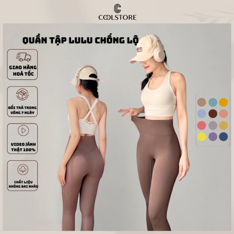 Quần tập chống lộ lulu thun lạnh 25% spandex cạp siêu cao chiết eo tôn dáng Coolstore