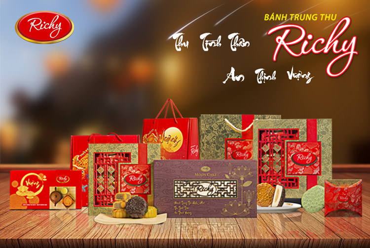 Richy là thương hiệu bánh nổi tiếng với sự đổi mới và chất lượng trong các sản phẩm bánh kẹo. Bánh trung thu của Richy được biết đến với sự tinh tế trong thiết kế và hương vị đặc trưng.