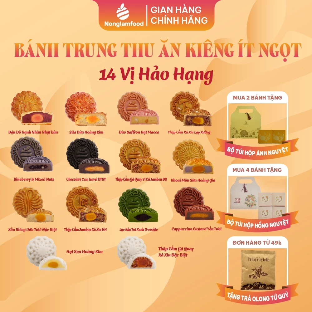 Nonglamfood cung cấp các loại bánh trung thu ăn kiêng, ít ngọt nhưng vẫn đa dạng về hương vị mặn và ngọt của nhân bánh để người tiêu dùng có nhiều sự lựa chọn.
