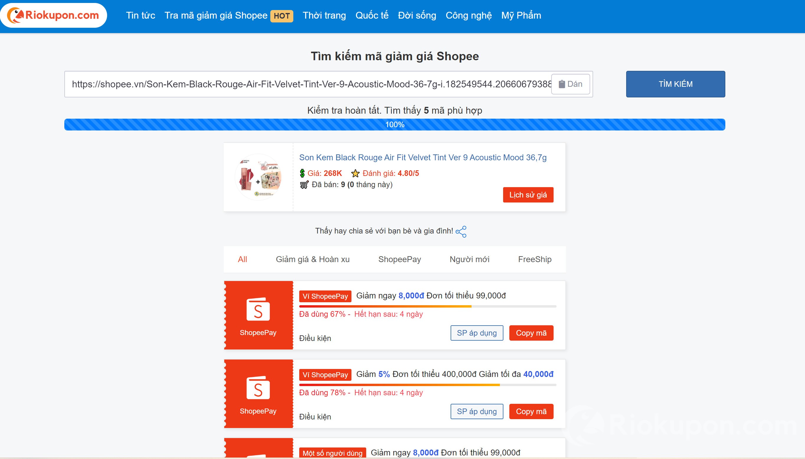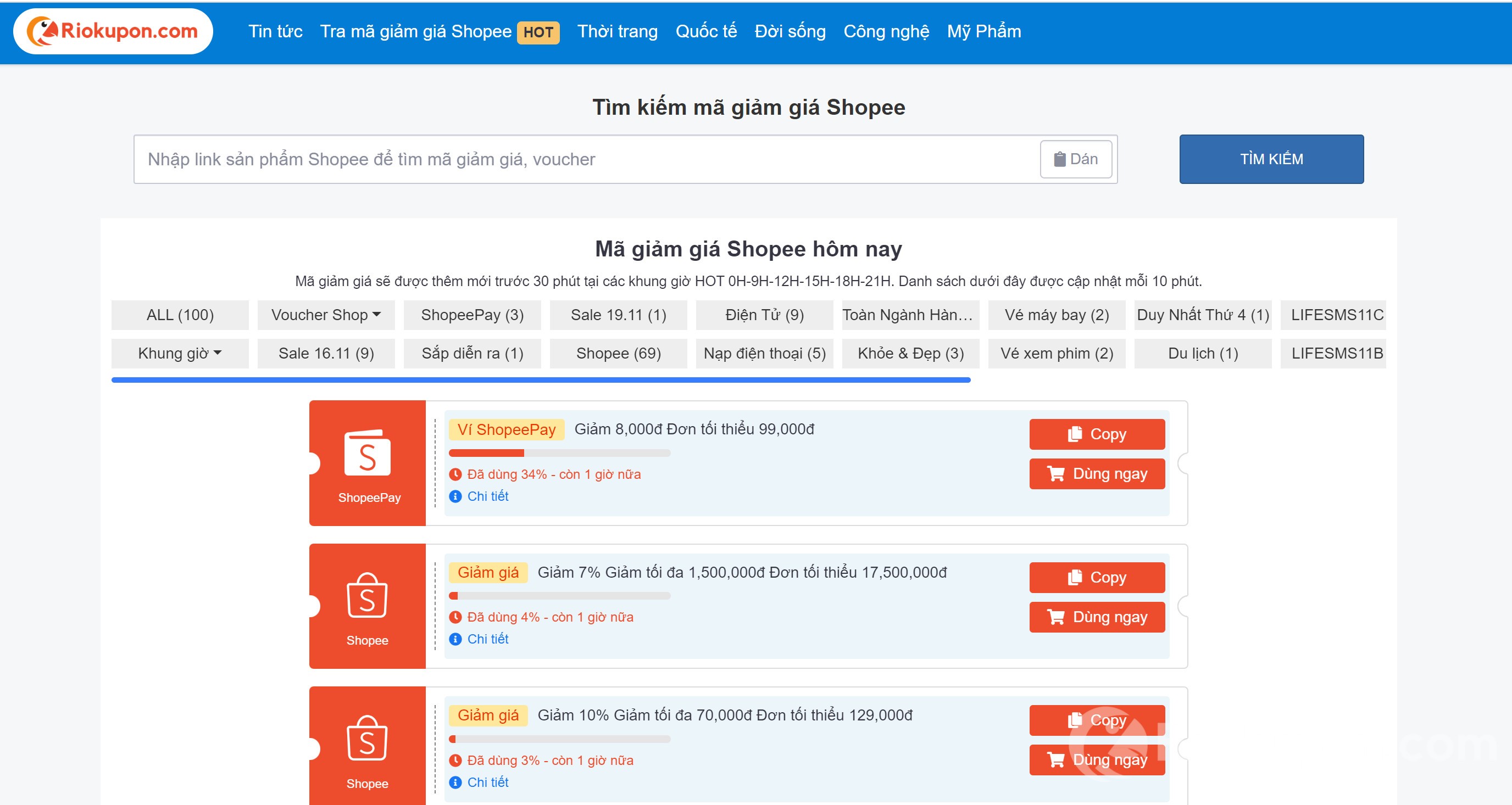 Hướng dẫn tìm mã giảm giá Shopee trên Riokupon cực đơn giản