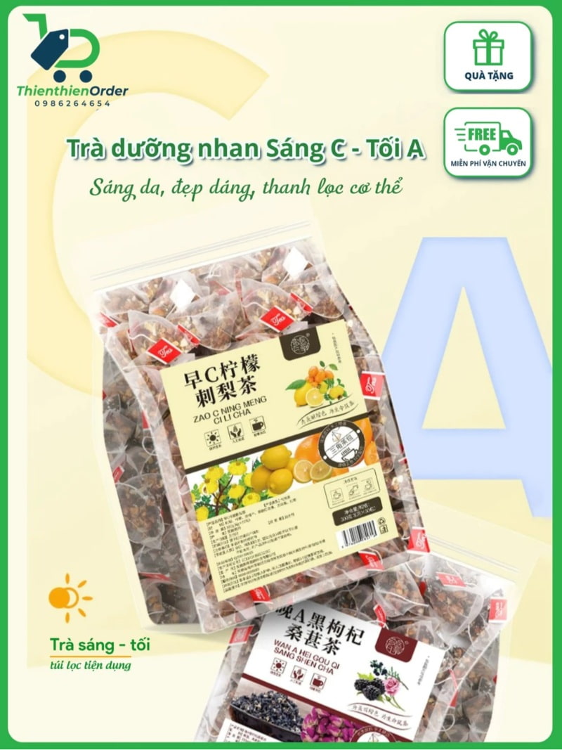 - Trà dưỡng nhan sáng da bổ sung vitamin sáng C tối A