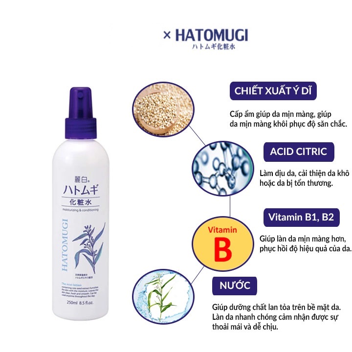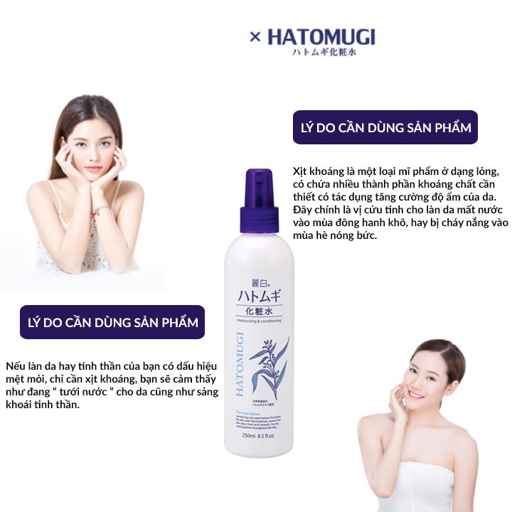 - Xịt khoáng dưỡng ẩm, làm sáng da Reihaku Hatomugi - 250ml
