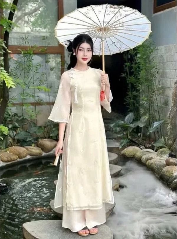 Phong cách tối giản vẫn luôn là xu hướng an toàn nhưng đầy sức hút. Áo dài tối giản năm nay tập trung vào đường cắt may chuẩn xác, phom dáng mềm mại và ít chi tiết rườm rà, tạo nên vẻ thanh lịch, thoải mái nhưng vẫn rất cuốn hút. Sự đơn giản trong thiết kế giúp tôn lên vóc dáng tự nhiên, phù hợp với những người thích phong cách nhẹ nhàng, tinh tế.